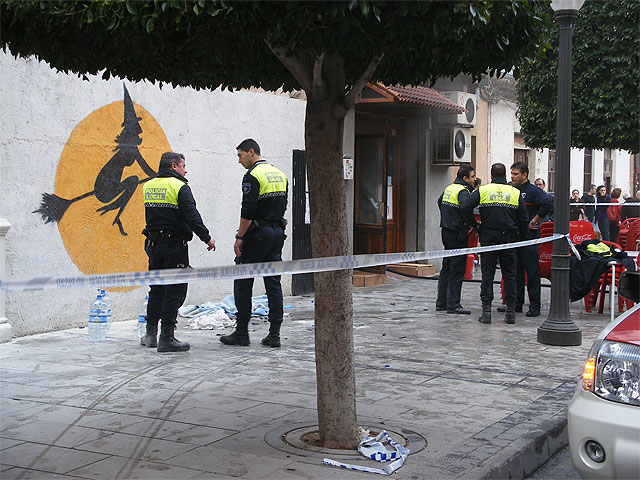 Agentes de la Policía Local intervienen con un individuo que se quema a lo bonzo en un bar de la C/ Mayor de Alcantarilla