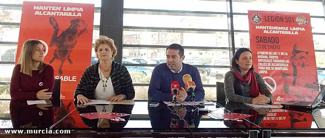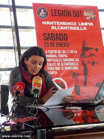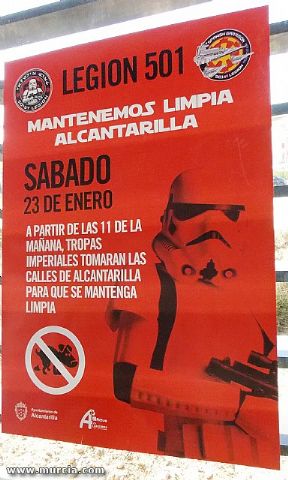 Joaquín Buendía, informó sobre la campaña de sensibilización que comenzará mañana sábado 23 de enero con la visita de la "Legión 501 Spanish Garrison" con sus tropas imperiales, que a partir de las 11 de la mañana y hasta las 5 de la tarde tomarán las calles de Alcantarilla para que se mantenga limpia. Se repartirán 1.000 flyer informativos sobre los problemas ambientales y transmisión de enfermedades que provocan los excrementos que se abandonan en calles, parques y jardines. Se han realizado 500 chapas con la imagen de la campaña. (Indicar que este grupo de animación ha decidido donar el coste de su participación a la protectora de animales "Almohadillas Felices").