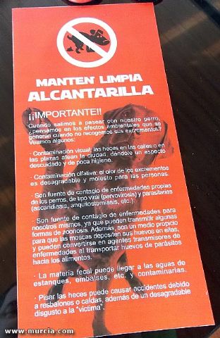 Buendía, manifestó que "para llevar a cabo esta campaña es fundamental la colaboración y responsabilidad de los dueños de mascotas para mantener Alcantarilla limpia, siendo esta una apuesta más, como hace tan solo unos días presentábamos la puesta de nuevos contenedores de recogida de residuos sólidos, así como los de recogida selectiva de papel y cartón y plásticos y envases. Al igual que unos días antes hacíamos lo propio con la puerta en marcha de un nuevo servicio de recogida de pilas y baterías usadas y ahora esta campaña que esperamos el apoyo de los ciudadanos no solo para llevarla a cabo y difundir la misma para conseguir como dice el eslogan de la campaña mantenemos limpia Alcantarilla". Todo ello contando con las acciones informativas en la calle por parte de la Policía Local y en los colegios por parte de la Concejalía de Sanidad.