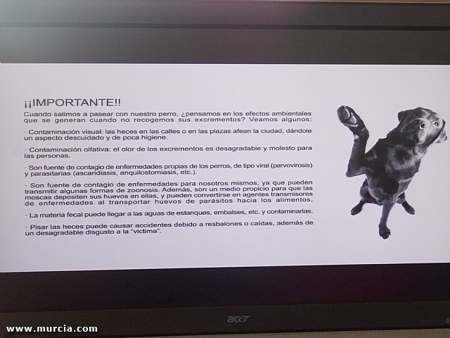 La Concejal de Urbanismo, Obras y Servicios, Laura Sandoval, dio a conocer como se irá desarrollando la campaña, con expresa referencia a los artículos 19 y 27 de las Ordenanzas Municipales, como así reflejan ya los carteles fijos que se están colocando en parques, jardines y plazas, con la expresa prohibición de tener perros sueltos y la obligatoriedad de recoger los excrementos, con posibles sanciones de hasta 300 euros, como marca en las mismas. También dio a conocer el lugar donde próximamente se inaugurará el primero de los parques caninos en nuestro municipio, en construcción en estos momentos y situado junto a la avenida Príncipe, en concreto en un terreno que hace esquina también con las calles Puerto Rico y Argentina, en la zona del barrio de Vistabella.