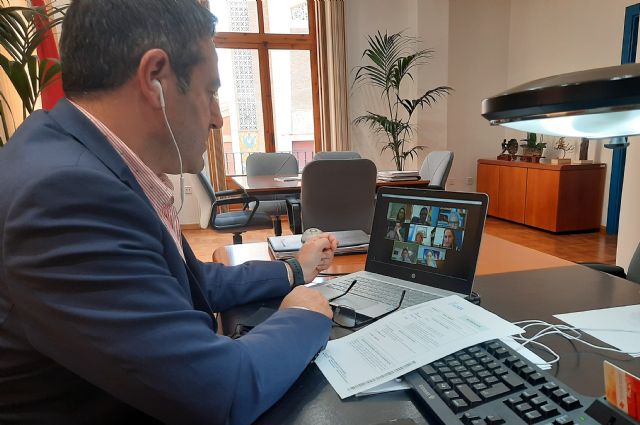 El alcalde de Alcantarilla, Joaquín Buendía, presidió hoy la Comisión de Seguimiento del Ferrocarril, que se celebró de forma telemática y a la que asistió el director general de ADIF, Juan Pablo Villanueva, para analizar el desarrollo de las obras del Corredor Mediterráneo y de la línea del AVE Murcia-Almería, a su paso por Alcantarilla.