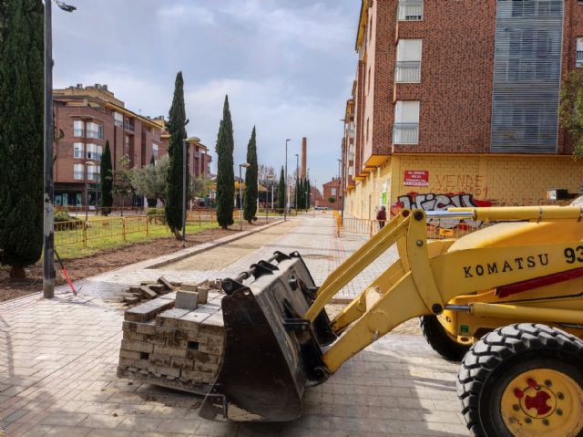 Las obras para construir el primer tramo de la plataforma peatonal y ciclista de Alcantarilla han comenzado en la plaza Nuestra Señora de Lourdes, junto a la avenida Ejército del Aire y continuarán por la zona arbolada junto al IES Alcántara, la calle Aviación y el Camino de los Romanos.