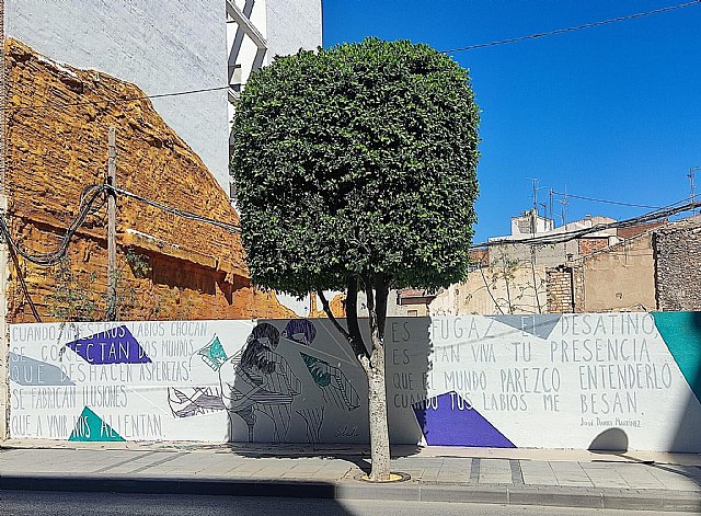 Un mural en Alcantarilla presenta versos y modelaje del artista musical José Daniel Martínez