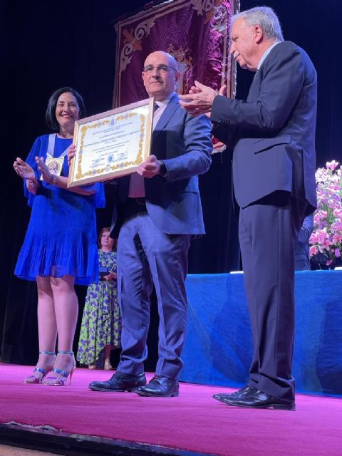 La entrega de esta distinción, que fue recogida por el gerente de la Arrixaca, Francisco Soriano, se llevó a cabo en el Centro Cultural 'Infanta Elena' durante el acto de lectura del pregón de las fiestas patronales de Alcantarilla 2023.