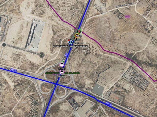 15.32 horas. Según los datos facilitados por los llamantes, el suceso se ha producido, por la colisión de seis turismos en la A-7 dirección Murcia, a la altura de la Estrella de Levante, en Alcantarilla. Informaban de que un coche estaba totalmente destrozado, de que no podían acceder a este porque desprendía humo blanco y que habían muchos restos esparcidos en la calzada.