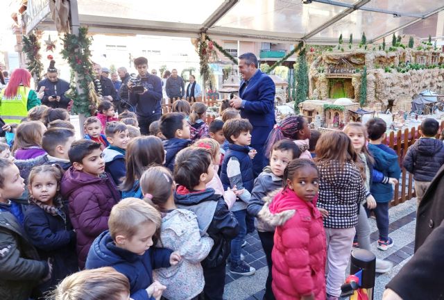 El alcalde de Alcantarilla, Joaquín Buendía, ha inaugurado hoy el Belén, acompañado por más de 400 escolares del municipio, y ha explicado que habrá que venir a visitarlo varias veces porque hasta el día 24 no estará la figura del Niño Jesús, que aún no ha nacido, y las de los Reyes Magos se irán acercando progresivamente al Pesebre hasta el 6 de enero".