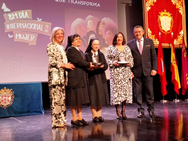 El Ayuntamiento ha entregado hoy los Premios de la Mujer 2025 a la comunicadora Carmen Manzanera, directora de Radio Sintonía Alcantarilla, y a la Congregación Hermanas Salesianas del Sagrado Corazón de Jesús, por su labor solidaria desde que se fundó en 1890.
