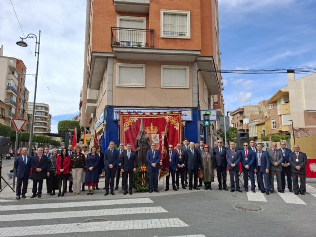 El alcalde, Joaquín Buendía, participó en esta celebración, junto con el presidente de la Junta de Hermandades y Cofradías Pasionarias, Jesús Avilés, y los presidentes de las doce hermandades y cofradías de Alcantarilla, que desfilaron desde la plaza de San Pedro hasta la escultura al Nazareno, en la calle Nona, acompañados por los Centuriones de San Pedro, para hacer la ofrenda de una corona de laurel en honor a los cofrades fallecidos.