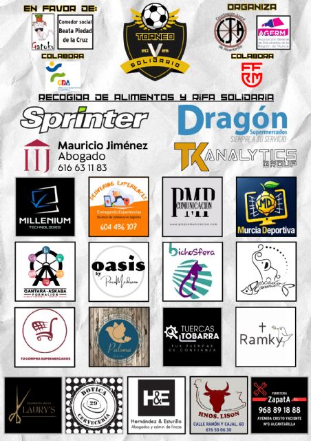 "Estamos contentos porque la respuesta de todo el mundo ha sido positiva, como así se puede reflejar con los patrocinadores. Hemos recibido apoyo de más de veinte empresas de Alcantarilla, que demuestran así su solidaridad al querer colaborar con nosotros y hacer posible que este evento se lleve a cabo. Vamos a disfrutar de una jornada muy solidaria, muy divertida y llena de fútbol”, asegura Juan Carlos Mateo, también organizador.